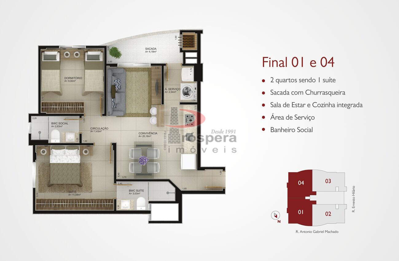 - Apartamentos com 02 dormitórios