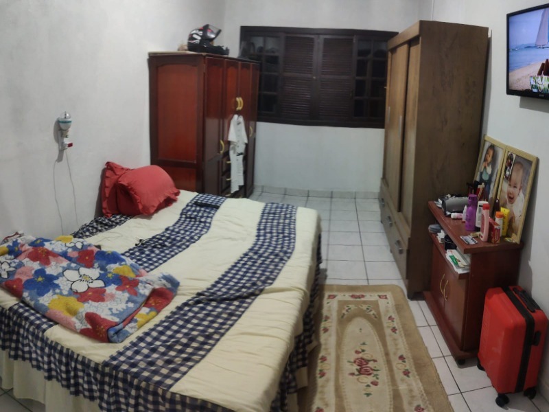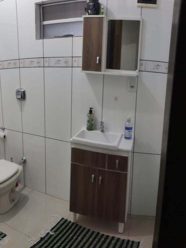 Casa com 3 quartos, suíte, dois banheiros sociais, cozinha mobiliada.