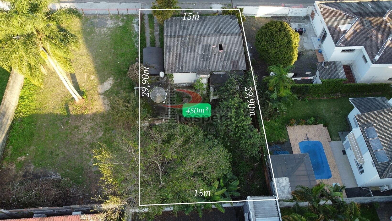 Lote medindo 450m² (15m x 29,90m)
